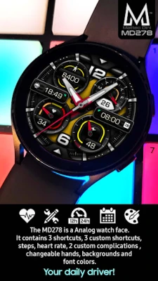 The MD278 is a Analog Wear OS watch face by Matteo Dini MD.