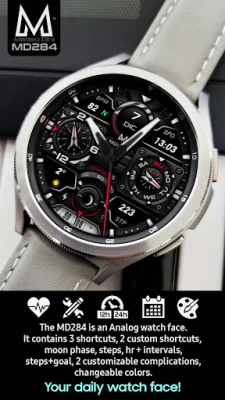 It contains 3 Preset App shortcuts, 2 customizable shortcut, steps, daily goals, heart rate, 2 customizable complications where you can have the data you prefer such as "barometer", "weather" (etc.), changeable colors and more.