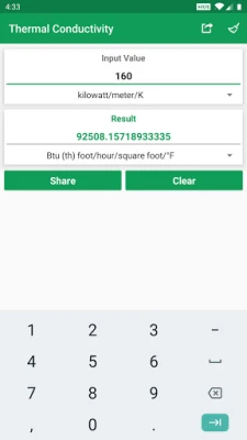 • Calculated values and results can be shared to social media, mail, messages and other sharing apps.