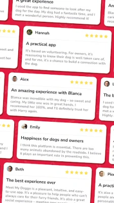 Got a dog ? Whether it's for walks, playtimes and cuddles, for a few hours or for several days during your vacation... thousands of people dream of owing a dog but can't have one for various reasons, so they make themselves available on a voluntary basis to take care of your doggo and have the chance of having a great time with him/her. And it's great for your dog: (s)he makes a new friend, has more outings, more petting, more games… doggie dreams come true.