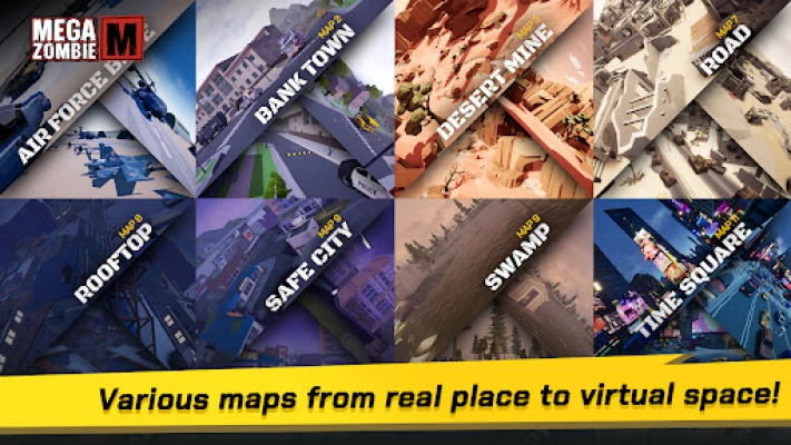 Mega Zombie M is a multiplayer third-person shooter where players battle against each other, and zombies hunt all players during the battle.
