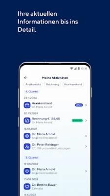 Jederzeit auf Ihre Daten wie Versicherungsstatus, Mitversicherte und aktuelle Arztbesuche zugreifen.