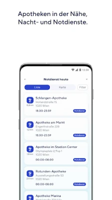 Suche in der Nähe sowie nach Bereitschafts- und Notdiensten.