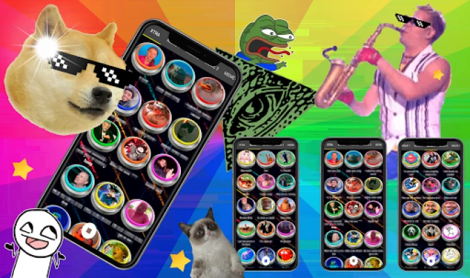 We always work to make the application faster and lighter. New sounds, includes stop button, you can press buttons in combination without limits. A large sounding board full of sounds. The meme sound board always available to share with your friends.
