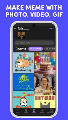• Search and browse reactions, memes or Emojis for the perfect reaction GIF