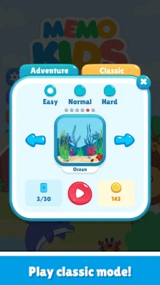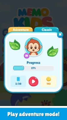 🌟 Adventure Mode: A path of more than 100 levels that becomes more difficult as you progress, helping children improve in memory match games. This Memory card game become more challenging with each level, motivating you to improve concentration and engage in effective memory training.
