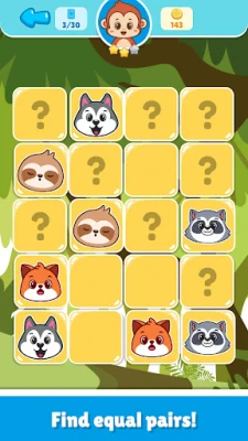 🐾 Classic Mode: Start with simple pairs. Pick from various difficulty levels and engaging environments like Farm, Forest, among others, and become an expert memory games for kids.