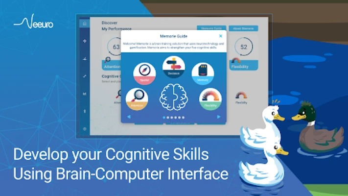 Memorie is a collection of engaging mobile games that helps train the different cognitive functions of our brain. These fun and engaging mental exercises seek to enhance five cognitive skills in attention, memory, decision-making, spatial awareness, and cognitive flexibility. Paired with the Neeuro SenzeBand or SenzeBand 2, Memorie ensures an accurate way of tracking and training brain fitness by calculating the users' cognitive score, in addition to Game scores.