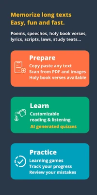 Memorify is the complete memorization app that helps you learn, practice long text memorization, and strengthen your long term memory. Whether you prefer rote memorization, cloze deletion, or interactive fill in the blanks, Memorify helps you memorize fast and remember longer.