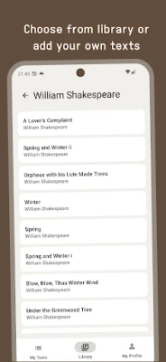 - Large library — classic works and the ability to add any of your own texts