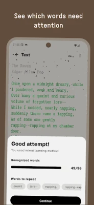 - Smart memorization system — gradual word hiding makes the learning process natural and effective