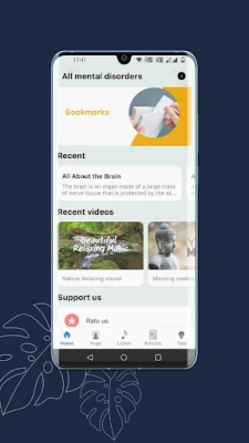 The app also provides information on yoga, meditation music, and mental health articles and tips for managing mental health. However, these resources are not intended to replace medical or mental health advice or treatment.
