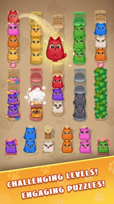 - Chubby Cat Sorting Fun: Solve delightful levels starring adorable round cats! Sort them by colors and poses to clear each stage.