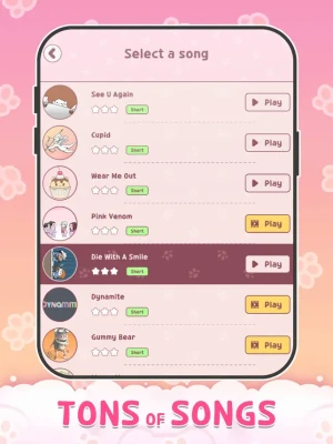 Meow Tiles: Kpop & Cats Piano is a rhythm-based music game designed to test your timing and musical skills. The goal is to play the correct notes at the right time, following the rhythm of the music.