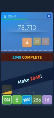 - Merge numbers to make 2048, you get a high bonus score and the game is complete.
