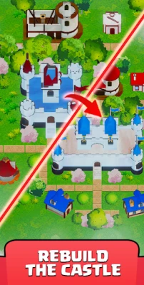 Features: 🪵Merge resources: combine three or more identical objects on a grid to merge them into an object of the next level in a progression. Climb the ladder of progressions to reach the maximum level. Watch out not to run out of space on the grid! ⛏️Gather materials: reach maximum levels of each resource to gain materials from them that you can use to rebuild your kingdom! Each resource has its own material and each of them is a valuable item on a construction site! 🏠Rebuild buildings: use materials to upgrade each house, tavern and any other building in your kingdom! Every time you upgrade the building, it adds to your treasury and you can earn more gold! 🏰Evolve kingdom: make your kingdom prosper and thrive! 💰Earn gold: come back to the game frequently to gather money that your kingdom earned while you were away!