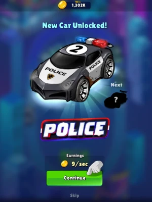 Merge 2 cars to get a new cooler model. Let neon cars race in a glowing night city arena to earn money for you. Activate super speed bonuses to make money faster. Which of the cool cars will become your favorite? Don´t forget to open mystery boxes - you can find many special cars in them. The most favorite one is the police car.