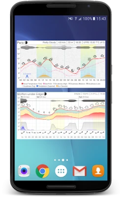 You can plot common weather parameters like temperature, wind speed and pressure, as well as tide charts, UV Index, wave height, moon phase, sunrise and sunset times, and much much more!
