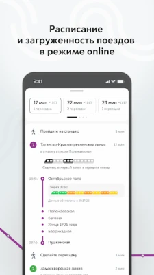 Схема метро. Выбирайте маршруты с учётом изменений в работе метрополитена, МЦК, МЦД и БКЛ – приложение подскажет время прибытия поезда и удобный вагон для пересадки. Хотите узнать расписание поездов МЦД и МЦК? Посмотрите график, нажав на нужную станцию. Нужен самый короткий и быстрый маршрут или с минимумом пересадок? Приложение всё сделает за вас – достаточно указать предпочтения в настройках, алгоритм подберет оптимальный вариант. Если ищете, где припарковаться, снять наличные или захватить по дороге кофе, то применяйте фильтры - нужные точки отобразятся на карте.