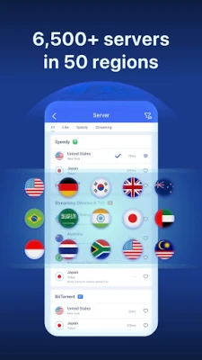 Our servers are situated in more than 50 countries and regions globally, ensuring you can connect easily from anywhere. With servers placed from Mexico to South Africa and Singapore to Ireland, you can find a server close to your location.