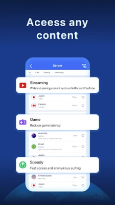 Don't allow slow internet speeds to hinder your online activities. Enjoy unlimited speed and bandwidth. With our built-in game and streaming acceleration servers, you get an unparalleled experience.