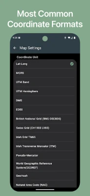 LUC offers an advanced coordinate converter supporting dozens of coordinate systems, detailed activity tracking, GeoJSON/KML export, multiple map layers, offline use, and professional measurement tools.