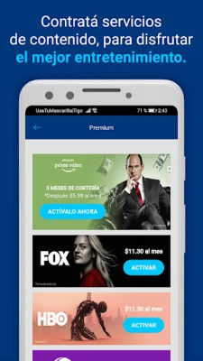 Postpago y residencial - Pago de Facturas: o afilia a pago automático. - Mejoras de plan: más beneficios cuando tú quieras. - Activaciones: explora los mejores servicios de contenido disponibles para ti. - Gestiones: todas las configuraciones red WIFI en la palma de tu mano.