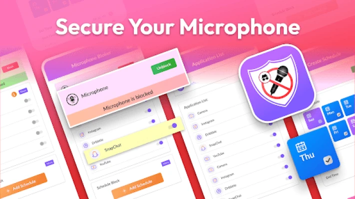 The Mic Blocker & Guard - Anti Spy is a protection tool that disables your phone's microphone. It protects and safeguards against misuse and unauthorized microphone access.
