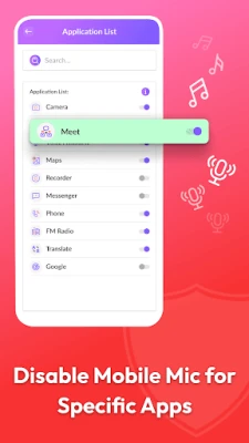 Mic Blocker & Guard - Anti Spy app gives you the list of applications that use the microphone permission. Now you can customize your experience with a flexible option to block mic access for specific apps. You will need to enable the mic block for the particular app, and it will then disable the microphone permission for that app.