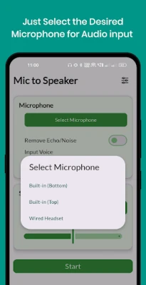 Select Microphone: Open Mic to Speaker and choose the microphone you want to use from the list of available devices.