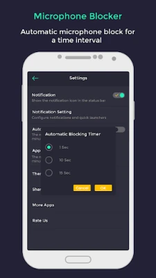 ✔ Block and protect microphone by single tap on notification