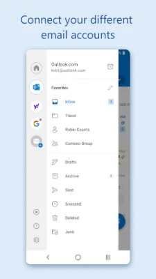 Cut through daily noise and remove clutter with swipe gestures to delete, archive, snooze, or move to folders quickly., Flag important messages for follow-up or pin them to the top of your inbox. Listen to what’s new in your inbox, and find what you need with Search with a tap or your voice.