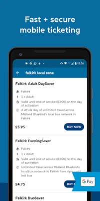 Mobile Tickets Purchase mobile tickets securely with a debit/credit card or with Google Pay and show the driver when boarding - no more searching for cash!