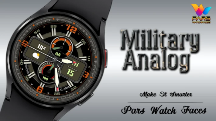 Classic, simple but informative analog watch face designed with military colors. Military Analog Watch Face is compatible with all watches using Wear OS SDK 34 and Api 34+.