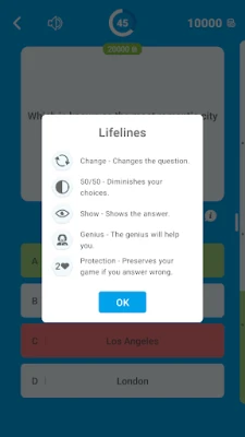 If you need help, you can use the famous helps and enjoy the Millionaire
