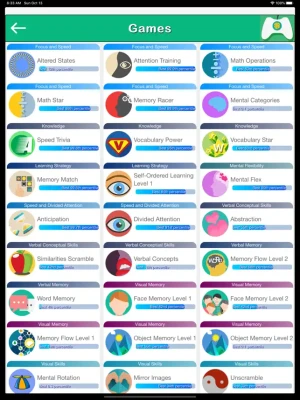 Mind Games is a great collection of games based in part on principles derived from cognitive tasks to help you practice different mental skills. This app includes many excellent free games. There are many trial games from Mind Games Pro that allow you to play 3 times. All games include your score history and a graph of your progress. Using some principles of standardized testing, your scores are also converted to a standardized scale so that you can see where you need work and excel.