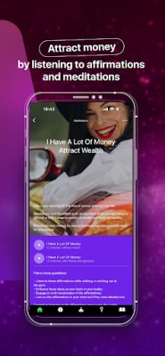 Inside the app, you'll discover: sleep meditations, manifestation meditations, money manifestation, love manifestation, gratitude meditations.