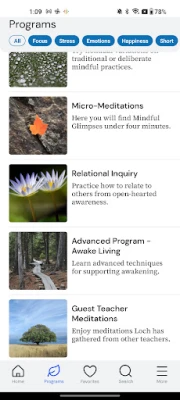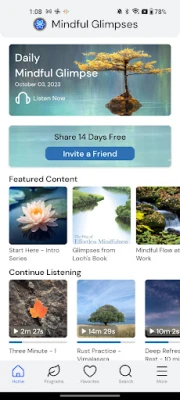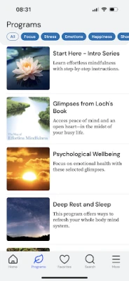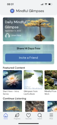 Mindful Glimpses has hundreds of sessions, with more added regularly, including: