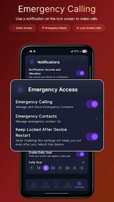 Emergency call access. Reach important contacts even when the device is fully locked. Fully configurable.