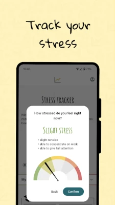 The "Stress tracker" supports you in noticing from time to time how stressed you are in the moment. The coach can also suggest that you observe your stress level using the stress tracker in the app. The technique of "Calm breathing" provides you with islands of relaxation in a stressful day.
