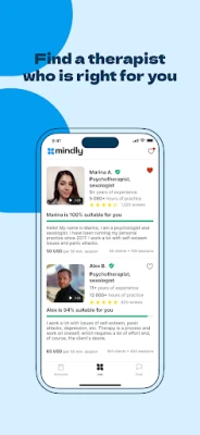 At Mindly, we understand that waiting weeks or months for a therapy session is no longer relevant. In today's on-demand world, mental health should not be an exception. That's why with Mindly you have the opportunity to book a therapy session and get a consultation from a psychologist today, no more waiting!