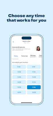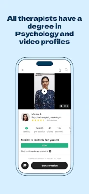 Before signing up for a session, you have the opportunity to view the specialist's video presentation, his certifications and learn about the specifics of his or her therapy. In addition, you can contact a specialist via chat to clarify any questions that may arise during the selection process.