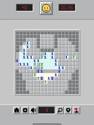 Three difficulty levels (beginner, intermediate, expert) and custom games with more mines