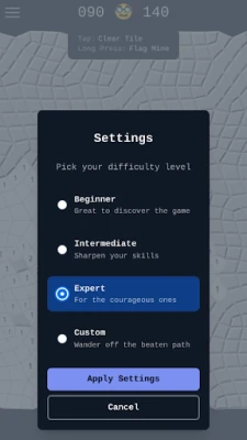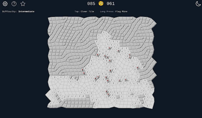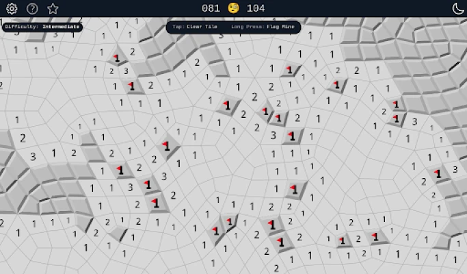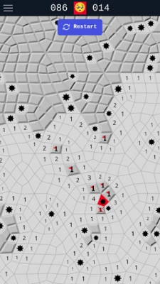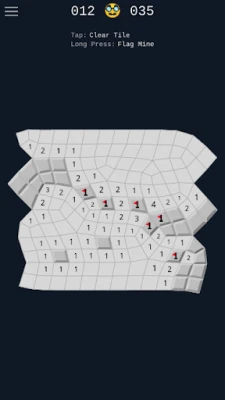 This version of Minesweeper comes with a twist, where the grid is irregular. On a regular grid, each cell has always 8 neighbors, but in this case, they can have between 6 and 10. This leads to more difficult games, as you can't build the same mental tricks to solve where the mines are.