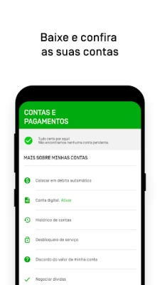 Acompanhe o pagamento das suas contas e, se precisar, acesse o código de barras pra pagar onde quiser. Inclusive, direto pelo app do seu banco. Se quiser mais detalhes sobre o que está sendo cobrado, é possível baixar a 2ª via da conta e entender o detalhe dos seus gastos. Quer mais comodidade? Faça adesão ao débito automático. Você também pode ativar a conta online. Assim, receberá sua conta por e-mail todo mês, sem papel e sem precisar ligar para o atendimento.