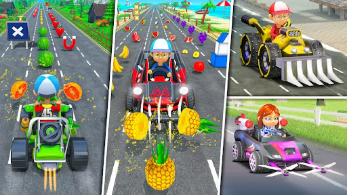 Crush the Fruit: Experience a fruity adventure where roads are filled with colorful obstacles like Apples, Mangos, Bananas, Oranges, Watermelons, Strawberries, Pineapples, and other fruit baskets. Crush these fruits along the way, add a playful twist to your race.