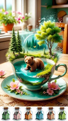 Step into a magical universe where tiny dreams come to life β MiniMagic Color is a one-of-a-kind coloring app that brings you into the enchanting world of miniature landscapes, bottle worlds, glass cup fantasies, and underwater mini paradises.