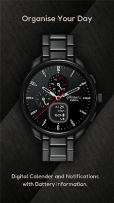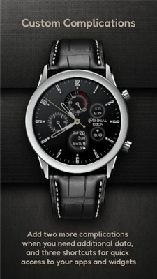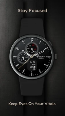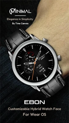 Experience minimalistic design and smart functionality with the Minimal Ebon Hybrid Watch Face. Featuring a sleek analog interface and a digital screen for essential data, it offers two custom complications and various personalization options for a unique, minimal aesthetic.