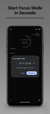 ⏳ Focus Mode with countdown timer — start a session, stay focused, let the launcher handle the rest.