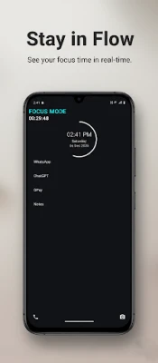 • Focus Mode with timer — set a focus session (1–12 hrs) and block distractions automatically. You can only access your favorite apps in focus mode nothing else and can't get out of focus mode until your decided time is over.